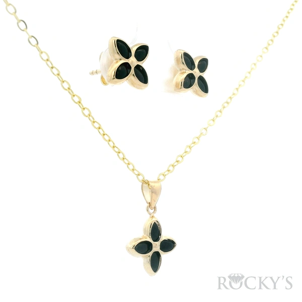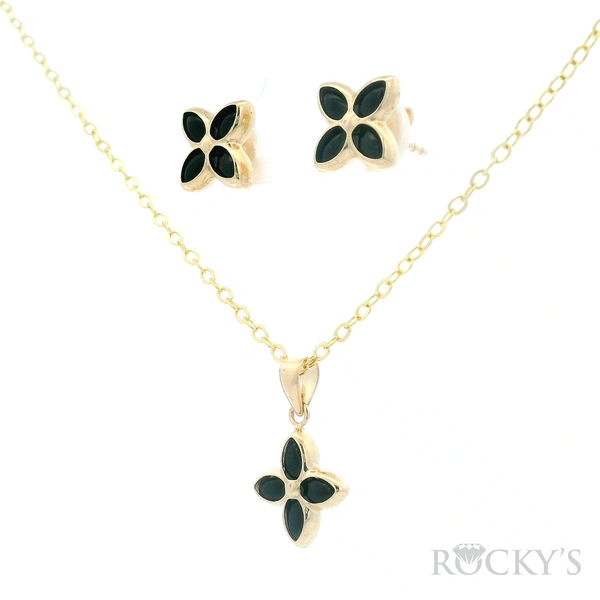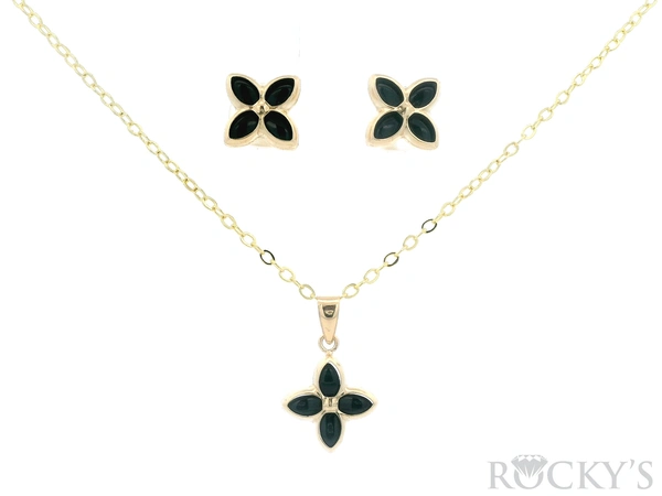 Yellow 14 Karat Fancy Black Princess Flower Earrings with 1.95Tw Gram weight