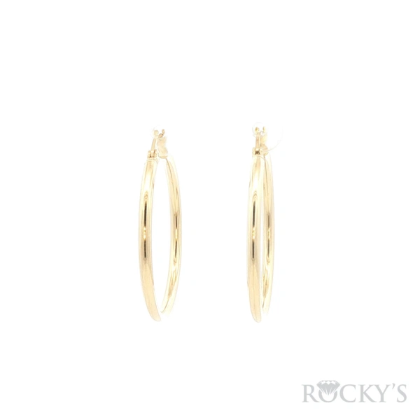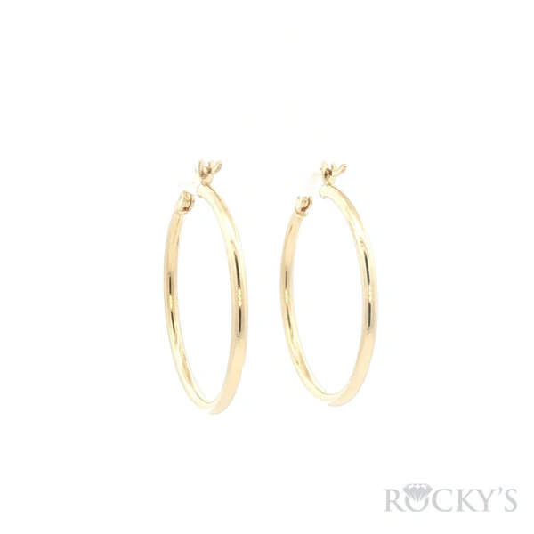 Yellow 14 Karat Gold Plain Hoop Earrings 1inches diameter, 2.10mm thikness & 1.84 Total gram weight