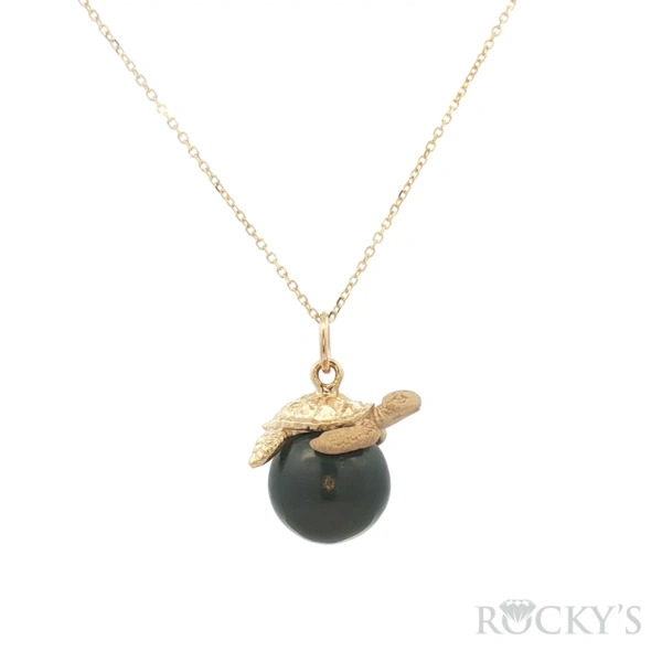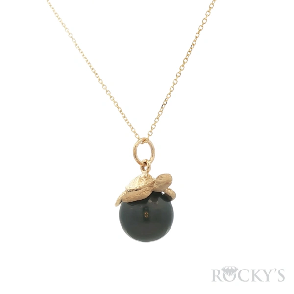 14kt Yellow Gold Tahitian Pearl Turtle Necklace with 11mm Tahitian Black pearl, Chain 18", 5.60 grms