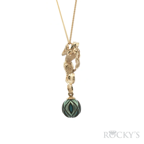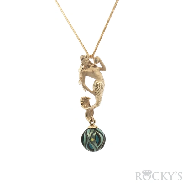 14kt Yellow Gold, Galatea Pearl collection Mermaid with 9.00mm Galatea pearl, 02cttw SI G/H Diamond, Wheat Chain 18", 8.92grms