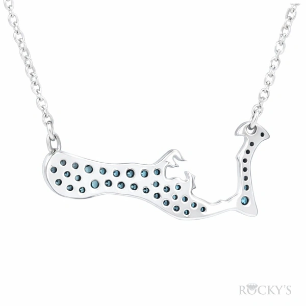 White Medium 14k Grand Cayman Color Diamonds Necklace with 0.24Tw Round GH Color & SI Clarity Blue Diamonds : Island Inspired Collection : Color Diamond Necklace