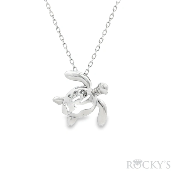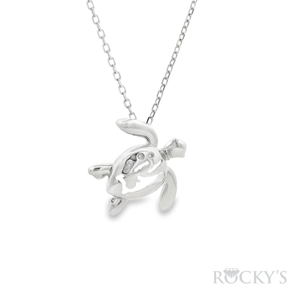 14 Karat White Gold Island Inspired Collection, Cayman Island turtle, Weight 1.70 With 3 /0.05Tw Round G/H SI white Diamonds (Chain Excluded)