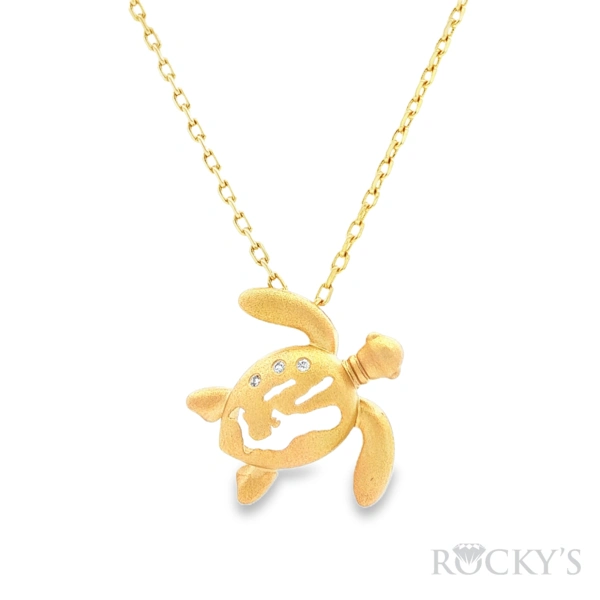 14 Karat Yellow Gold Brush Finish Island Inspired Collection, Cayman Island turtle, Weight 1.90 With 3 /0.05Tw Round G/H SI white Diamonds (Chain Excluded)