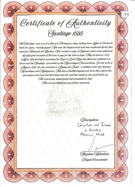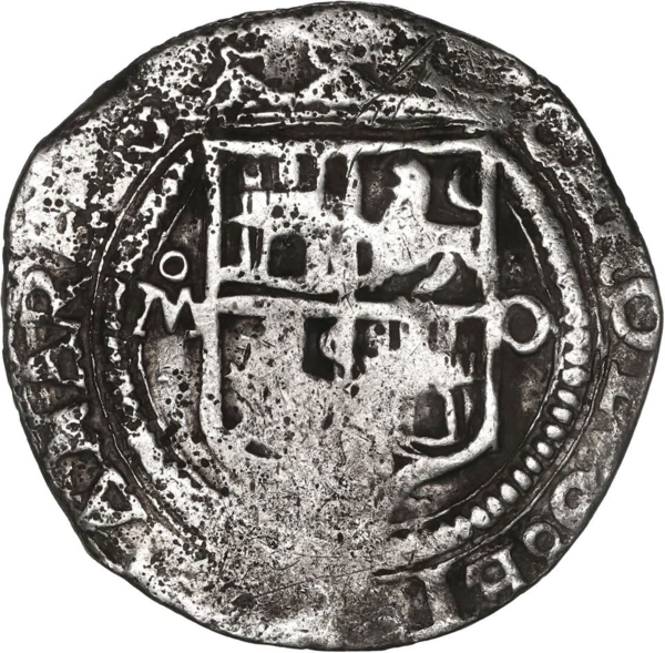 MEXICO, Mexico City, 2 reales, Charles-Joanna, "Late Series," assayer O to right, mintmark oM to left (oM-O). Nesmith-109; S-M10; Cal-103; KM-12. 6.45 grams. Rare coin to be from a shipwreck (as "Golden Fleece" and 1554 Fleet are too early), typically cru