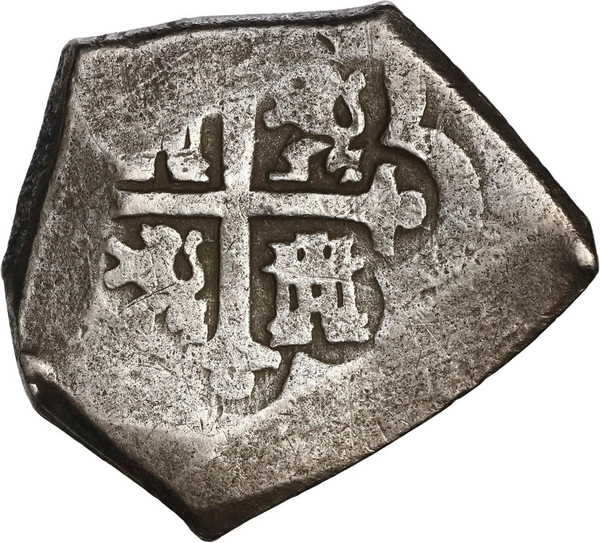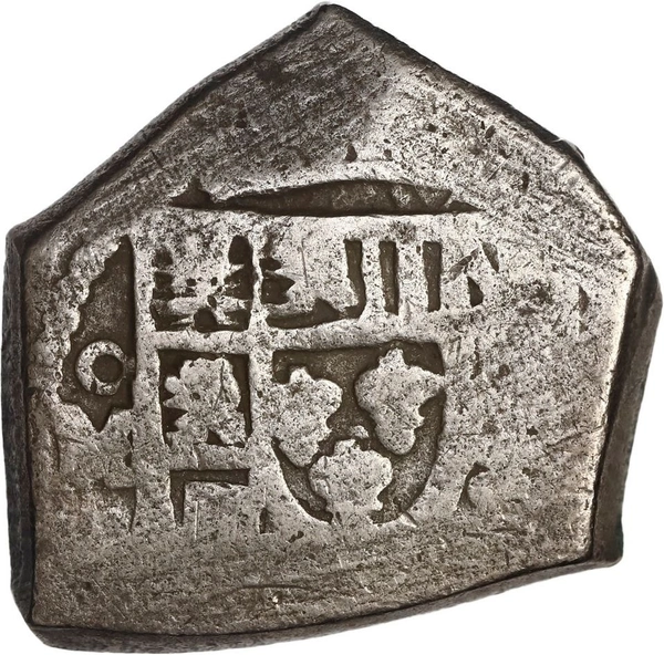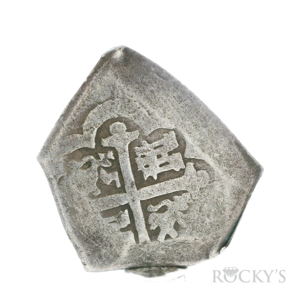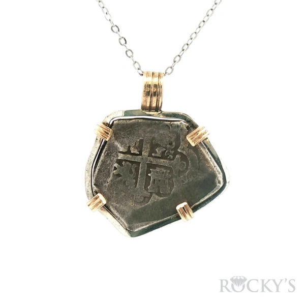 14kt Yellow Gold and Sterling Silver Wrapped Hammered MEXICO, Mexico City, cob 4 reales, Philip V, assayer not visible (J), pre-1725 style. Antique Pendant - MEXICO, Mexico City, cob 4 reales, Philip V, assayer not visible (J), pre-1725 style. S-M22; KM-4