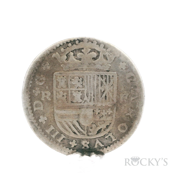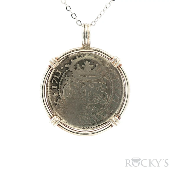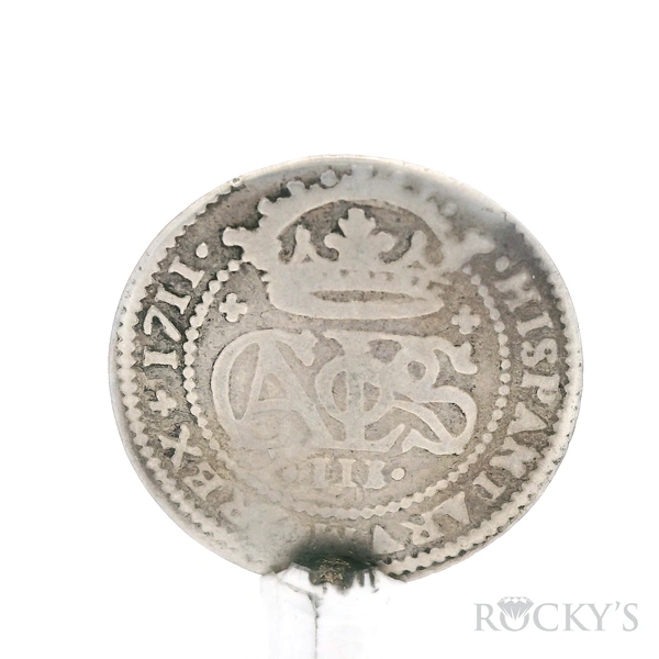 925 Sterling Silver wrapped, 1711 SPAIN, various mints, 2 reales "pistareens" of Charles III Pretender and Philip V, variou Antique Pendant - SPAIN, various mints, lot of six 2 reales "pistareens" of Charles III Pretender and Philip V, various dates and a