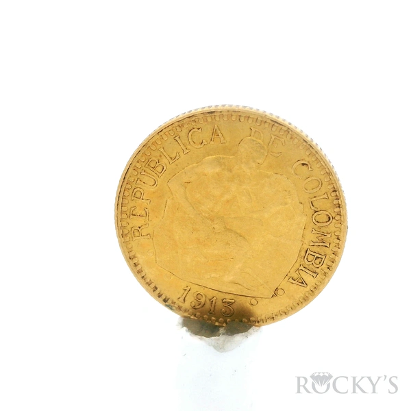 Yellow Gold COLOMBIA, MedellÃn, gold 2½ pesos, 1913, ex-JEAS. Antique Pendant - COLOMBIA, MedellÃn, gold 2½ pesos, 1913, ex-JEAS. Restrepo-450.1; KM-194. 3.99 grams. AU, fairly lustrous, scarce one-year type with a mintage of 18,000 coins (AGW 0.1178 oz).