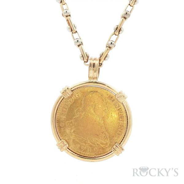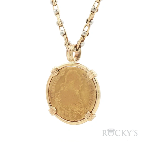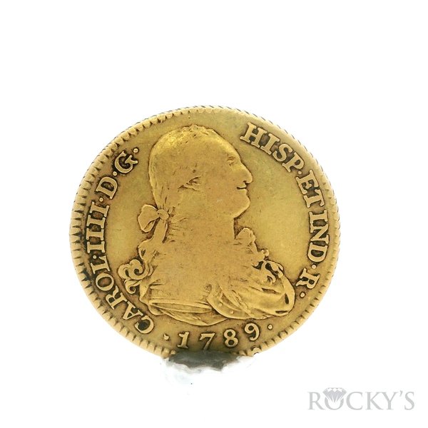 Yellow Gold SPAIN, Madrid, gold bust 2 escudos, Charles IV, 1789 MF. Antique Pendant - SPAIN, Madrid, gold bust 2 escudos, Charles IV, 1789 MF. KM-435.1; Cal-1274. 6.62 grams. VF with nice luster, faint red-gold toning on the bust.