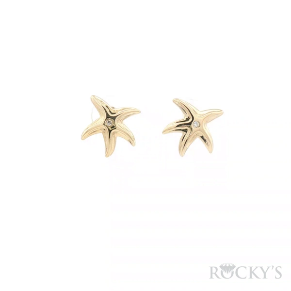 Yellow 14K Sealife Collection Starfish Earrings With 2 stones, 0.02Tw Round G/H SI Diamonds