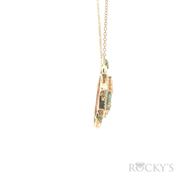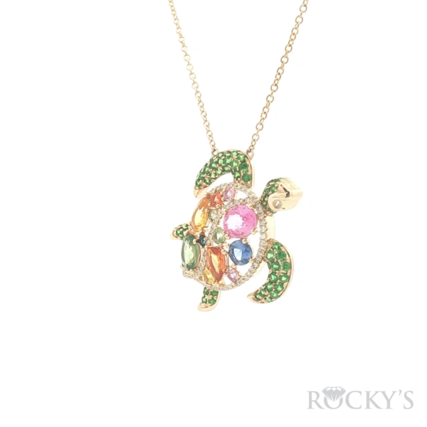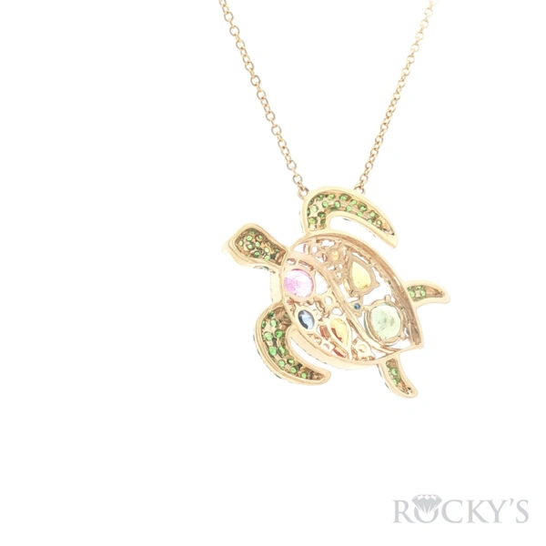 Yellow 14 Karat Sealife Collection Necklace With 3.26Tw Mix Shapes of Multi Color Sapphires, 0.85Tw Round Tsavorite And 0.22 Twt White Diamonds - Sealife collection Turtle Neckalce