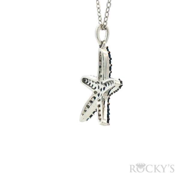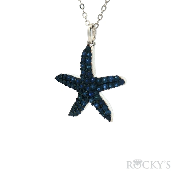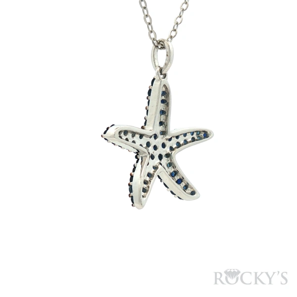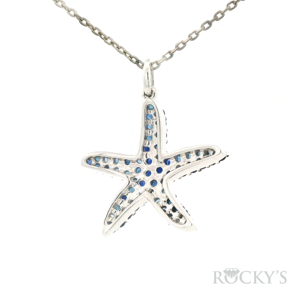 White 14k Sapphire Starfish Sealife Collection Pendant with 2.22Tw Round Shape Sapphire