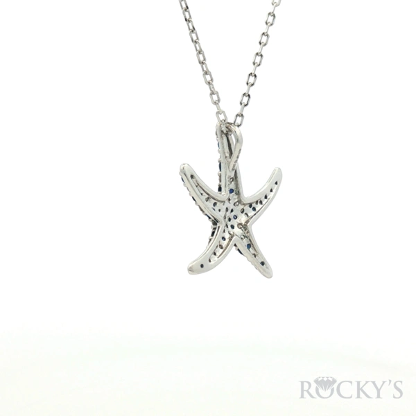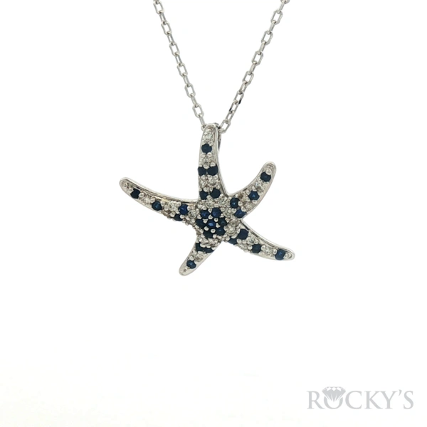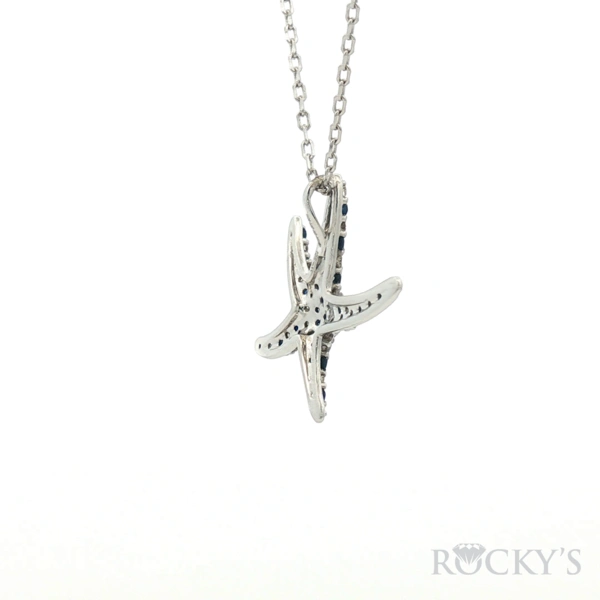 White 14k Sapphire Starfish Sealife Collection Pendant with 0.28Tw Round Shape Diamond and 0.41Tw Round Shape Sapphire