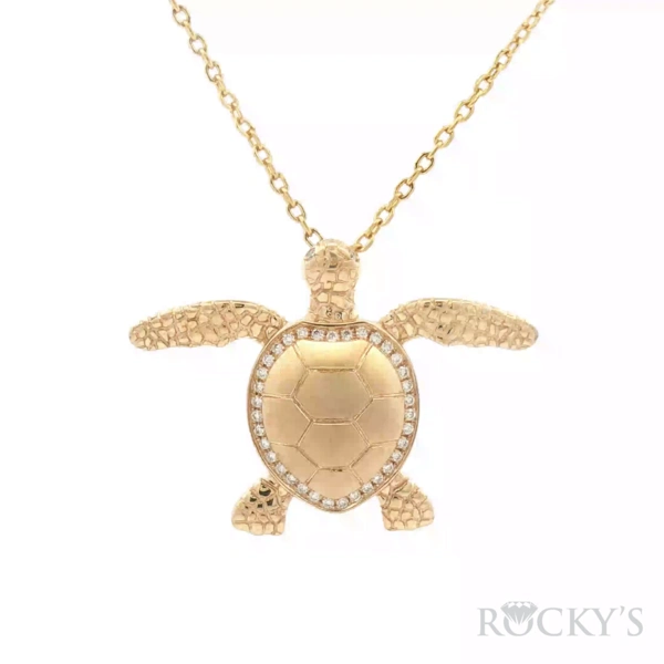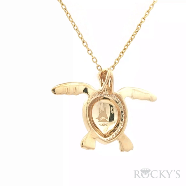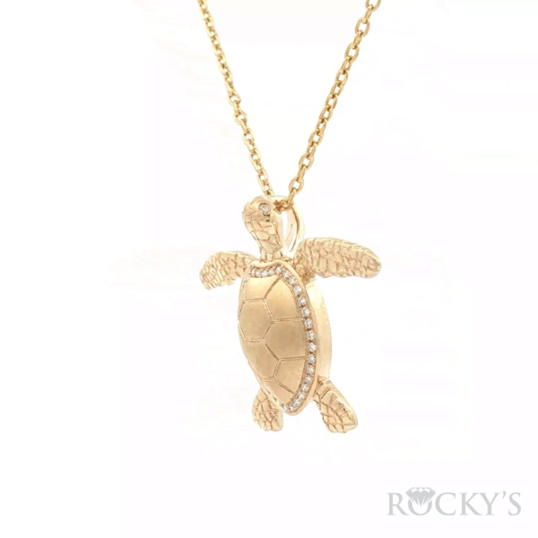 Yellow 14K Sealife Collection Turtle Pendant Weight 4.3grams, With 37 stones, 0.19Tw Round G/H SI Diamonds