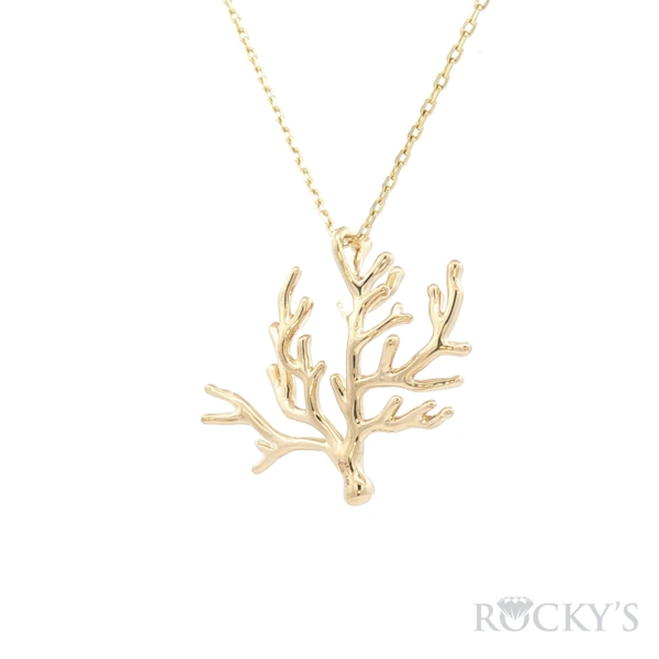 Yellow 14k Sea Life Coral Pendant- heavy, Weight:2.4g