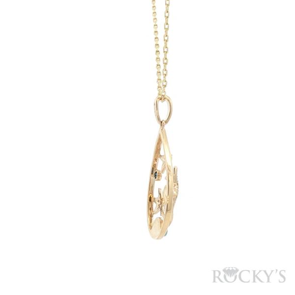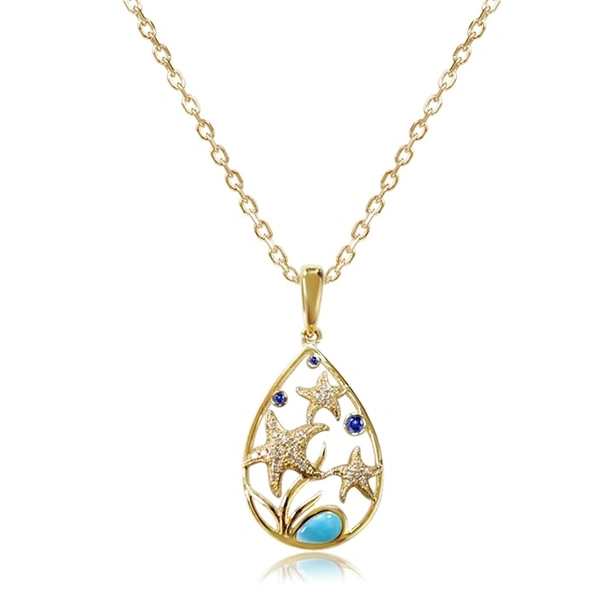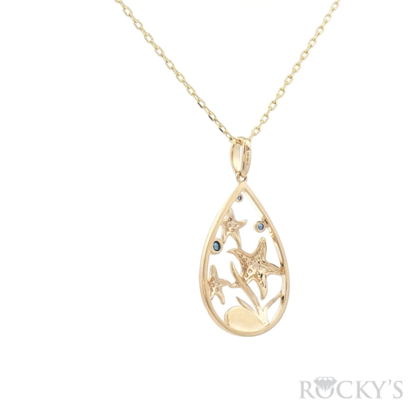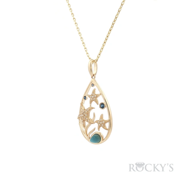 Yellow 14k Blue Hawaiian Stars Larimar Pendant with 0.14Tw Round Shape Diamond and 0.09Tw Round Shape Sapphire and Larimar