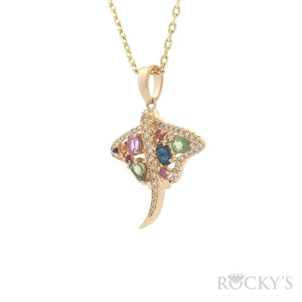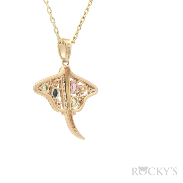 Yellow 14 Karat Color Stone Pendant With 0.95Tw Mix Shapes of Multi Color Sapphires And 0.22Tw Round Diamonds - Multi Color Sapphire Pendant