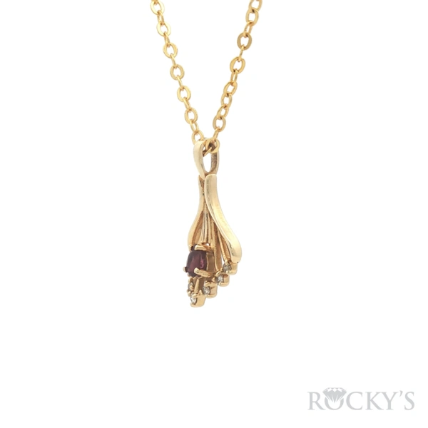 Yellow 14k Ruby Necklace with 0.23Tw Ruby and 0.03Tw Round Shape Diamond