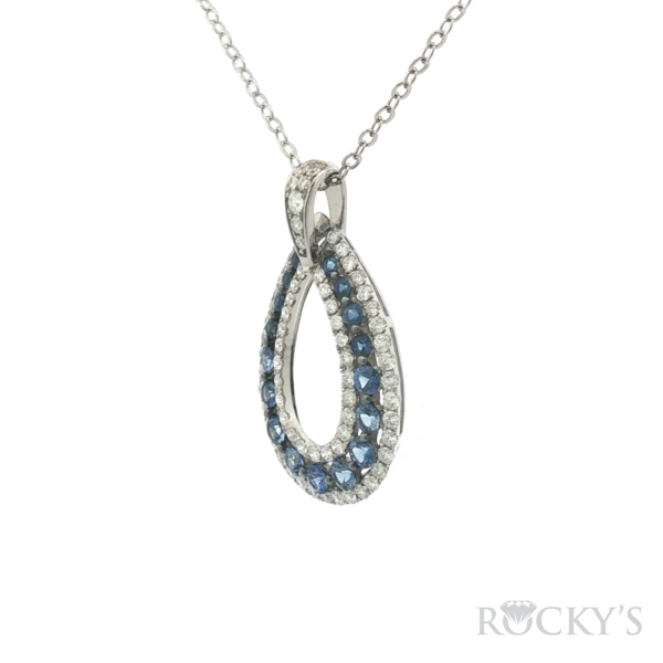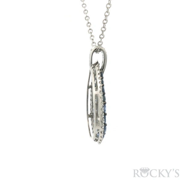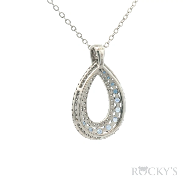 White 14k Sapphire Necklace with 1.44Tw Round Shape Sapphire and 1.21Tw Roun d Shape Diamond