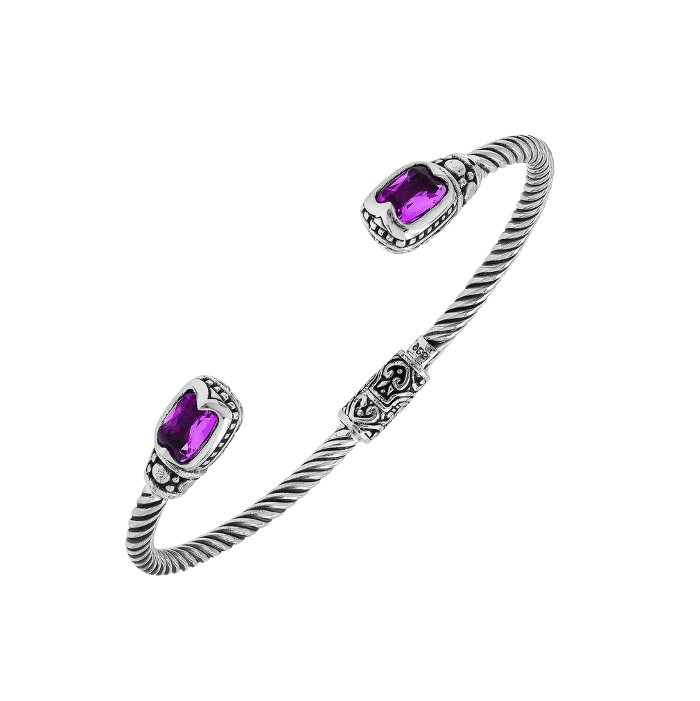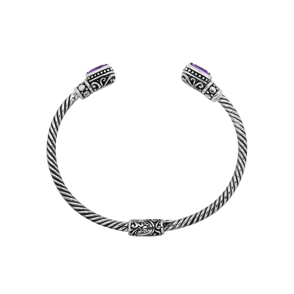 Silver Twisted Cable Bangle With Amethyst Quartz Ends.