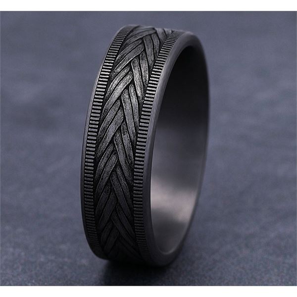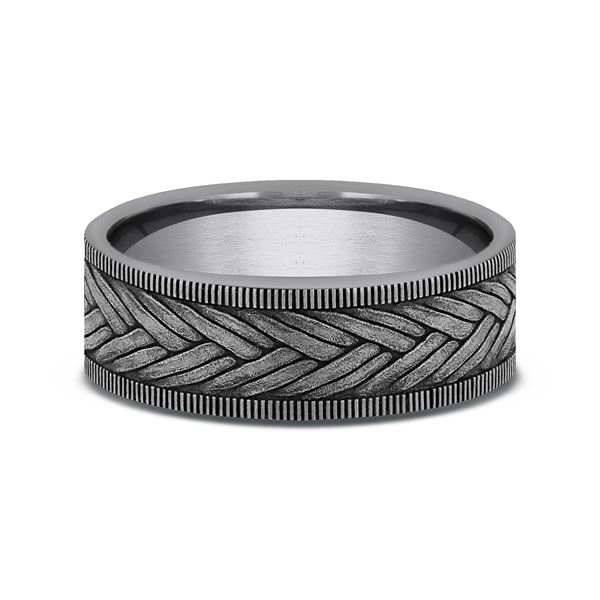 7mm, Comfort fit Grey Tantalum Wheat weave pattern