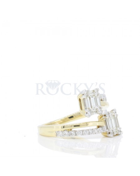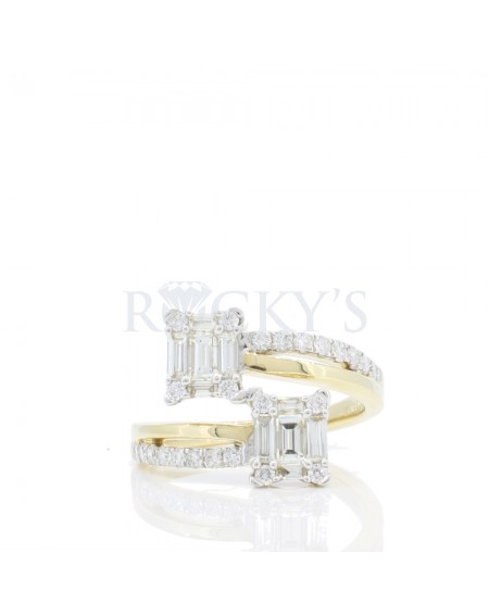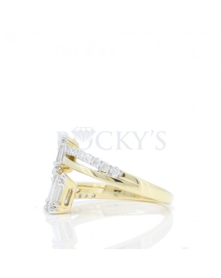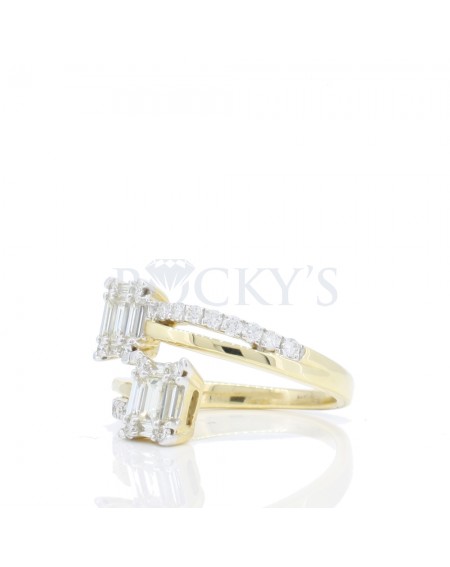 14k Yellow Gold with 0.67 carat Baguette Cut Diamonds and 0.42 carat Round Shape Diamonds.