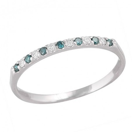 14k White Diamonds Band with 0.15 Carats Blue And White Diamonds