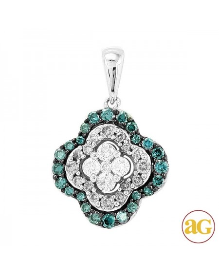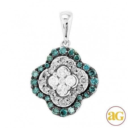 14k White Gold Blue Diamond Pendent with 0.50 Carats Blue Diamonds and White Diamonds