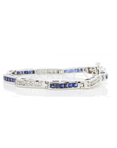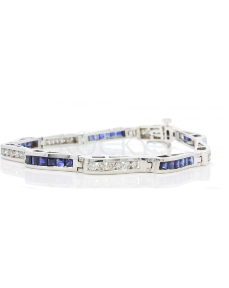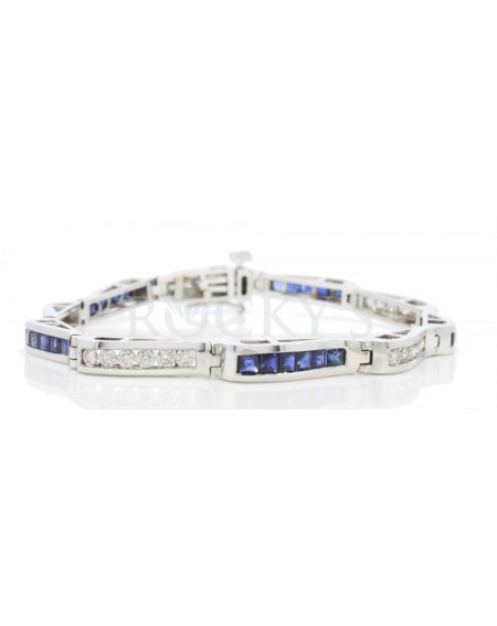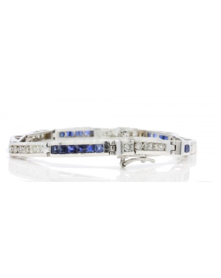 14K White Gold Sapphire Diamond Bracelet with 3.09 Carats of Sapphire and 1.50 Carats of White Diamonds