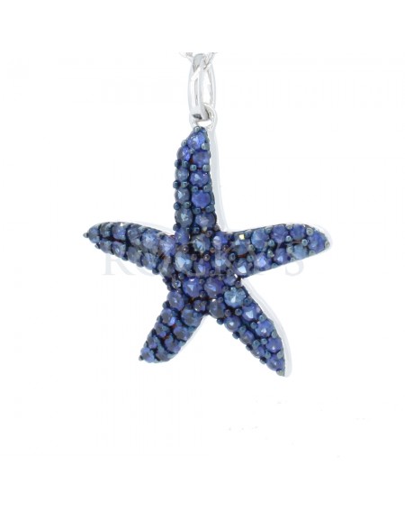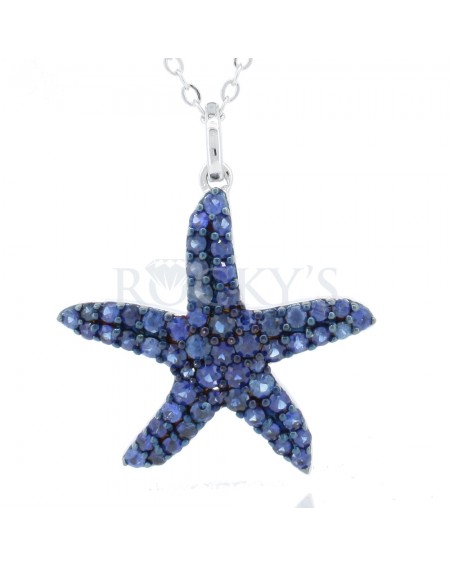 14k White Gold Blue Sapphire Starfish with 2.22 Carats Sapphires