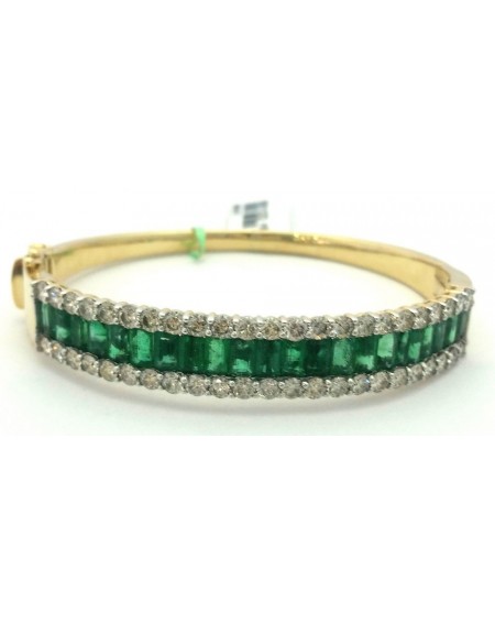 14k Yellow Gold Emerald Bracelet with 6.34 Carats Emerald and 4.16 Carats Round Shape Diamond