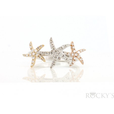 14K Three Tone Gold Diamond Ring With 0.41 Carat Of Diamonds