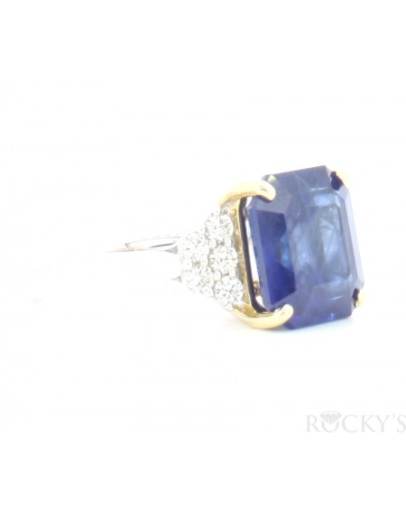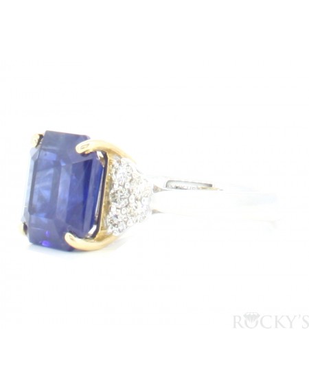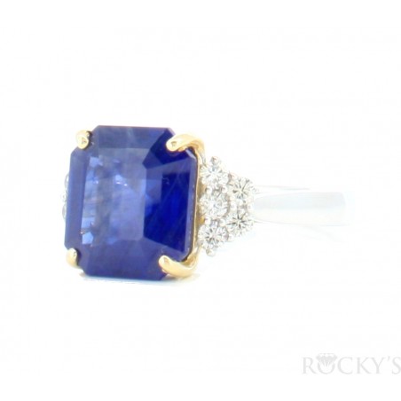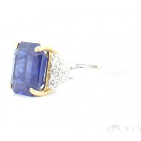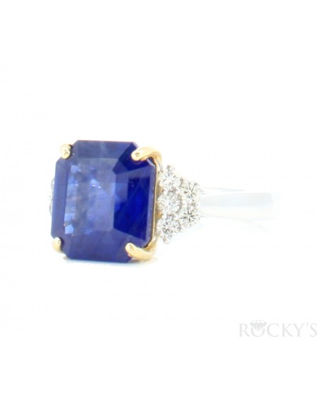 14K White Gold Sapphire Ring With 6.58 Carat Of Sapphire And 0.34 Carat Of Diamonds