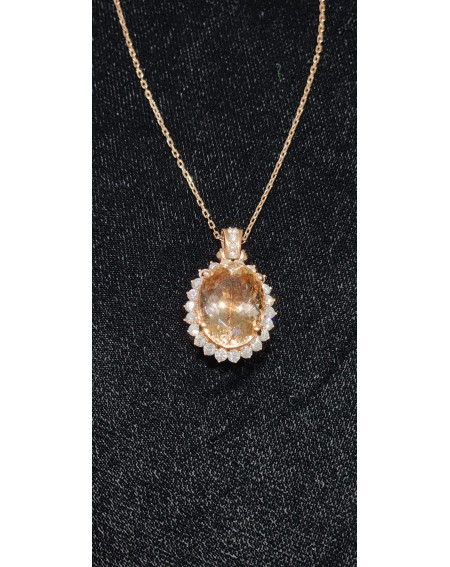 14K Rose Gold Morganite Pendant With Diamonds