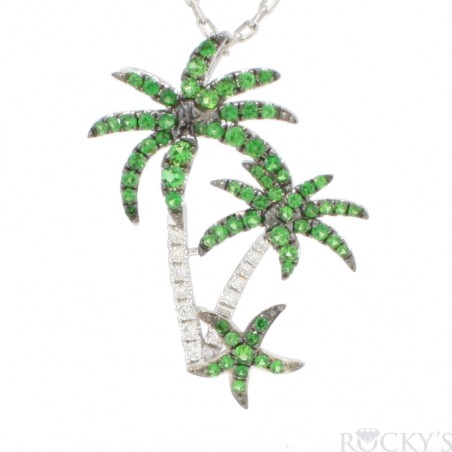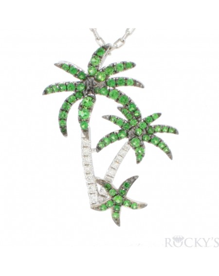 14k White Gold Palm Trees Pendant With White Diamonds And Tsavorite