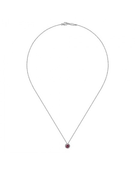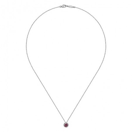 14k White Gold Diamond Halo Pink Tourmaline Pendant Necklace
