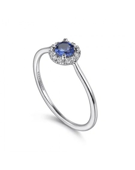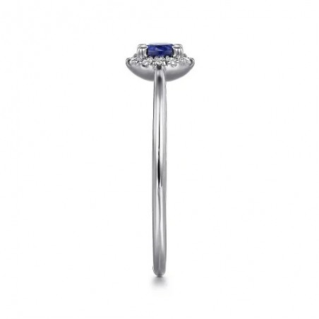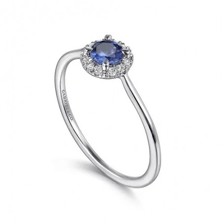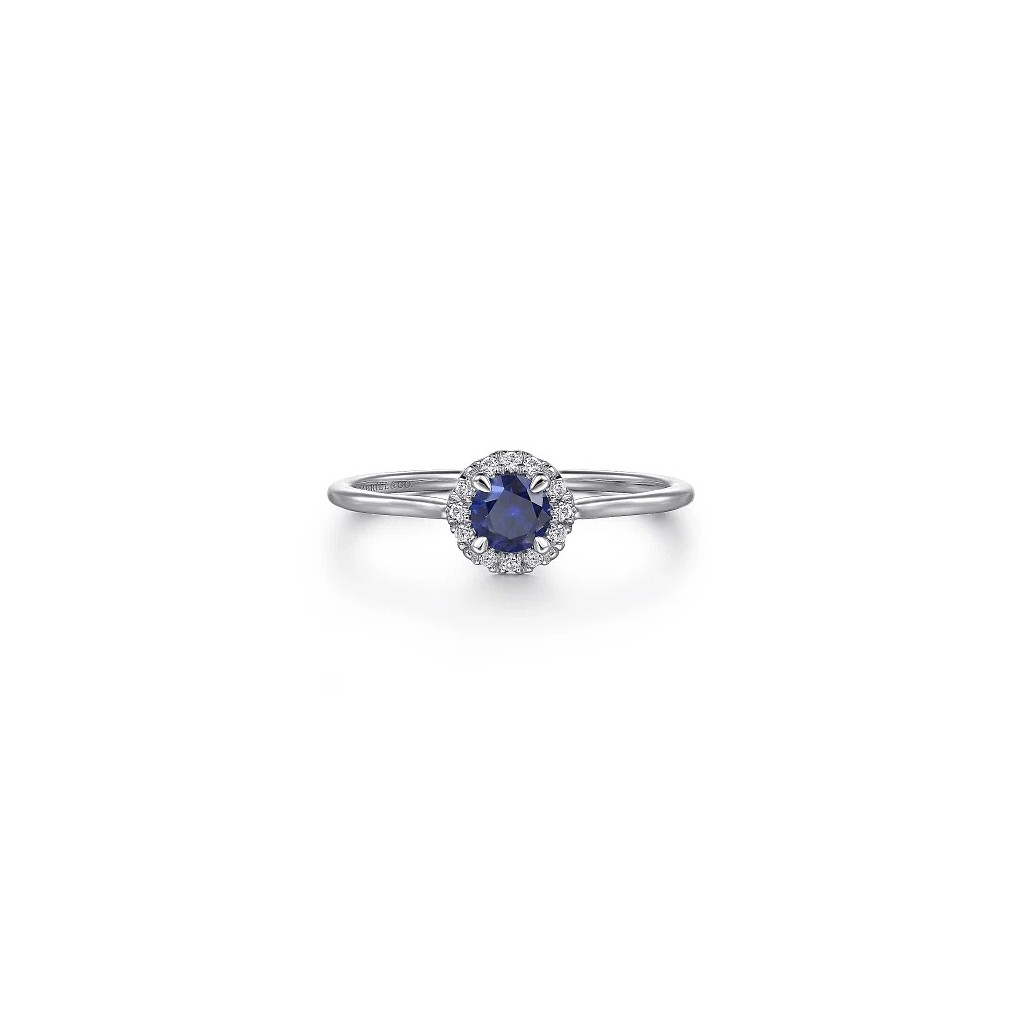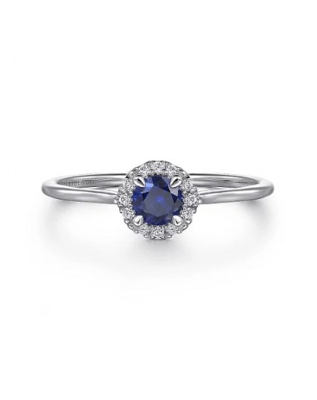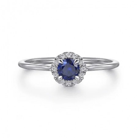 14K White Gold Blue Sapphire and Diamond Halo Promise Ring