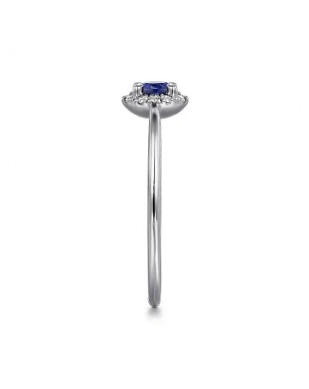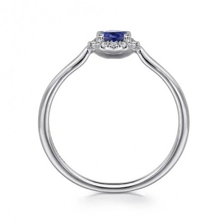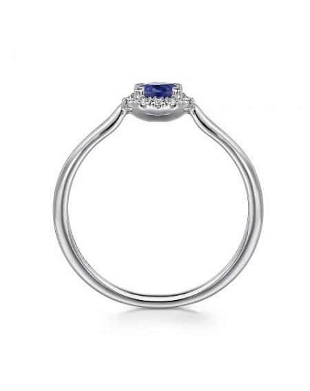 14K White Gold 0.31ct Blue Sapphire and 0.06ct Diamond Halo Promise Ring