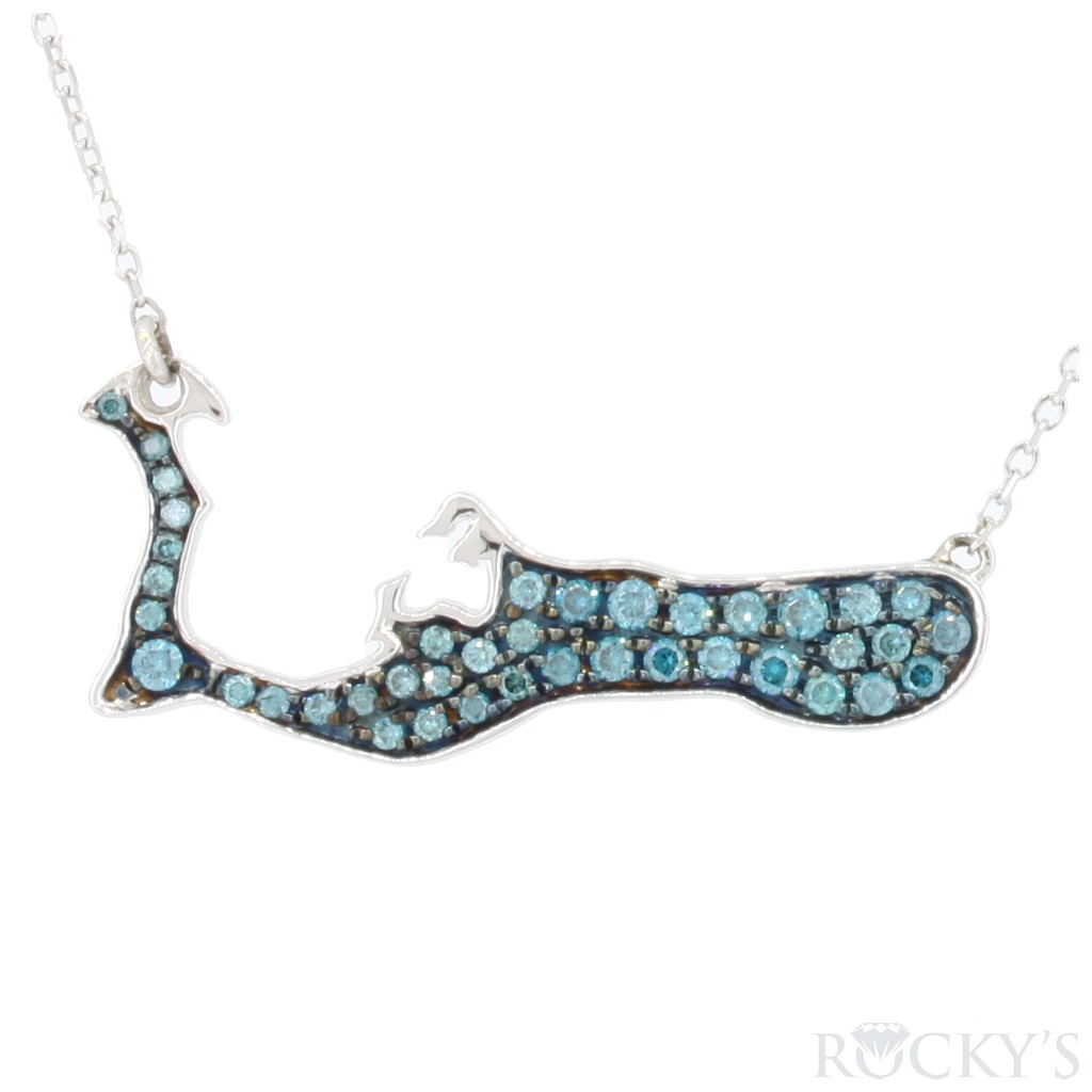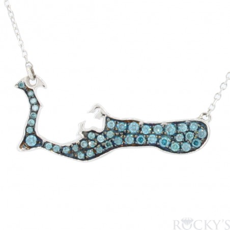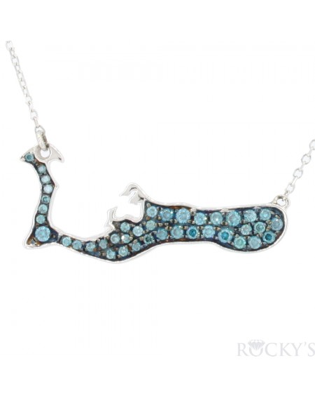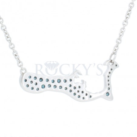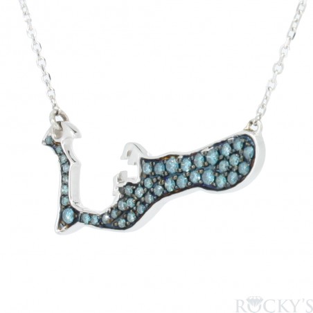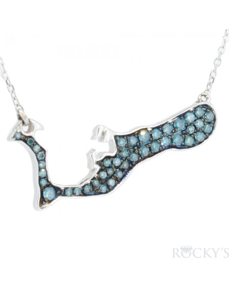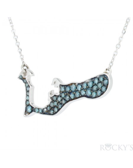 14K WHITE GOLD BLUE DIAMOND GRAND CAYMAN NECKLACE WITH 0.29 CARAT.