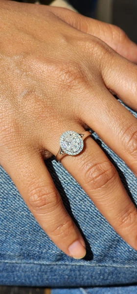 14kt white gold Diamond Ring with 0.74Tw Oval Shape Diamond and 0.27Tw Round Shape Diamonds, G/H Color & SI Clarity