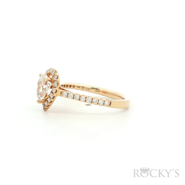 14kt Yellow Gold Diamond Ring with 0.35Tw Round Shape Diamond and 0.71Tw Pear Shape Diamonds G/H Color & SI Clarity