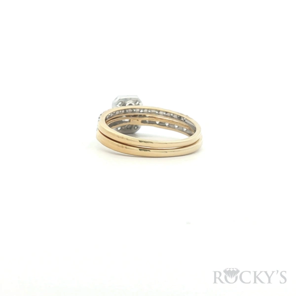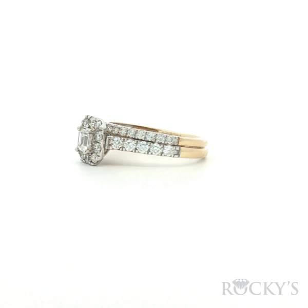 14k Yellow Gold Diamond Ring with 0.20Tw Emerald Cut Diamond and 0.82Tw Round Shape G/H Color & SI Clarity Diamonds