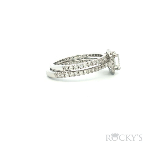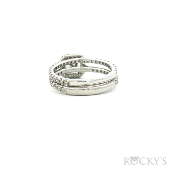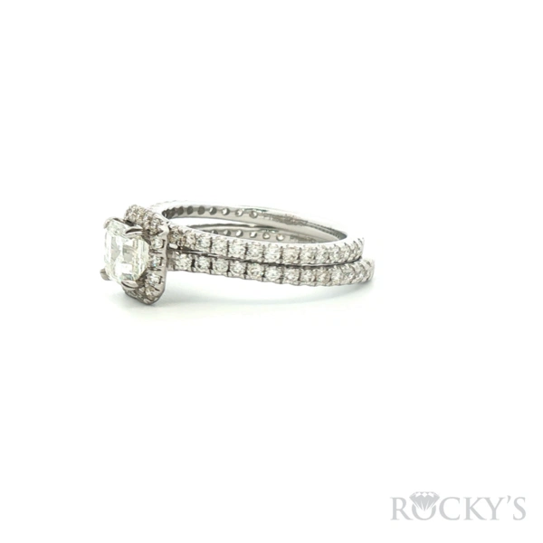 Platinum Diamond Ring with1.00Tw Cusion Shape Diamond and 0.50Tw Round Shape Diamond band, 0.35Tw Round Shape Diamond, G/H Color & SI Clarity