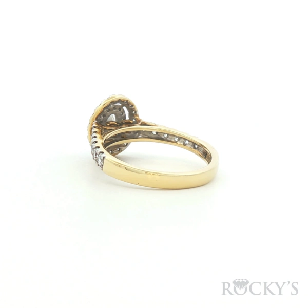 14kt Yellow Gold Engagement Ring, Size 6.5 With 1.00Ct Round Diamond And 0.32Ct Oval Diamond, G/H Color & SI Clarity