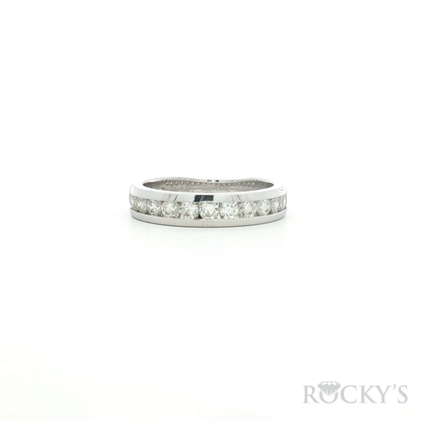 White 14K Wedding Band Size 5 With 18 Stones, 0.75Tw Round G/H SI Diamonds in Channel Setting