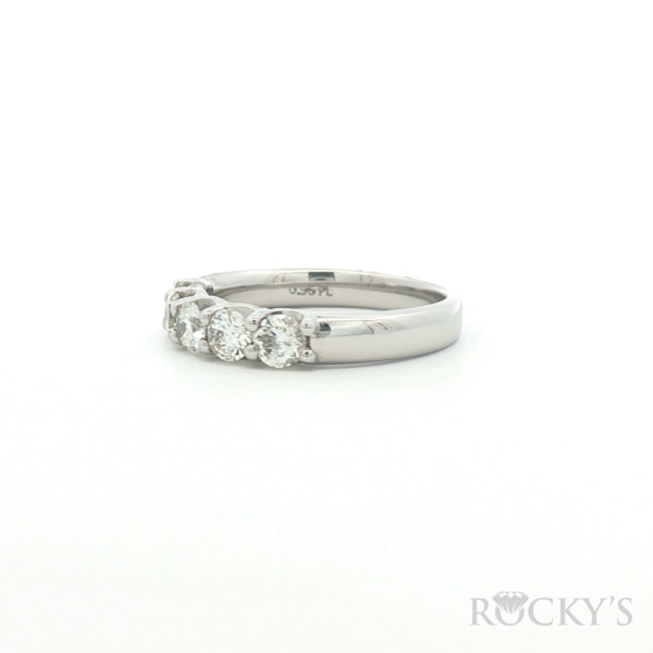 White Platinum Wedding Band Size 7.5 With 5 Stones and 0.96Tw Round Gh Si Diamonds