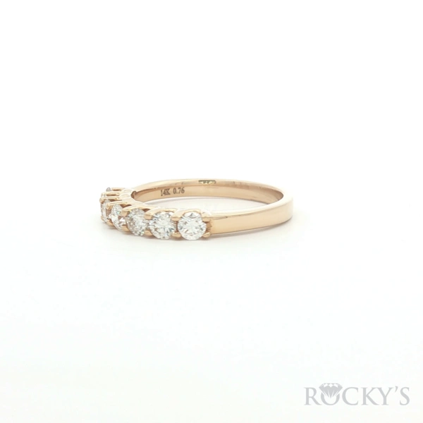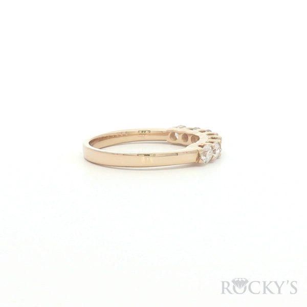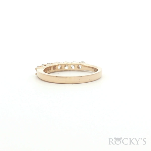 Yellow 14 Karat Wedding Band Size 7.5 With 7 Stones and 0.76Tw Round Si Clarity and Gh Color Diamonds