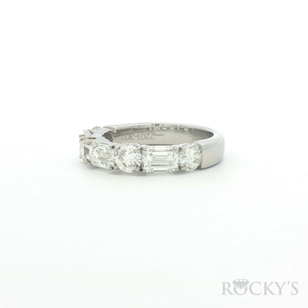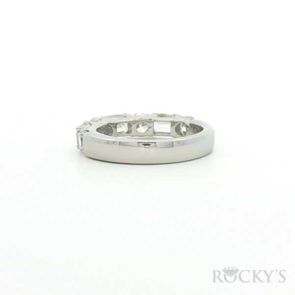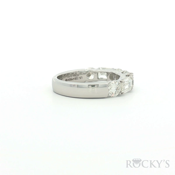 White Platinum Wedding Band Size 7.5 With 4 Stines of 1.27Tw Round Diamonds And 3 Stones of 1.66Tw Emerald Cut Gh Color and Si Clarity Diamonds