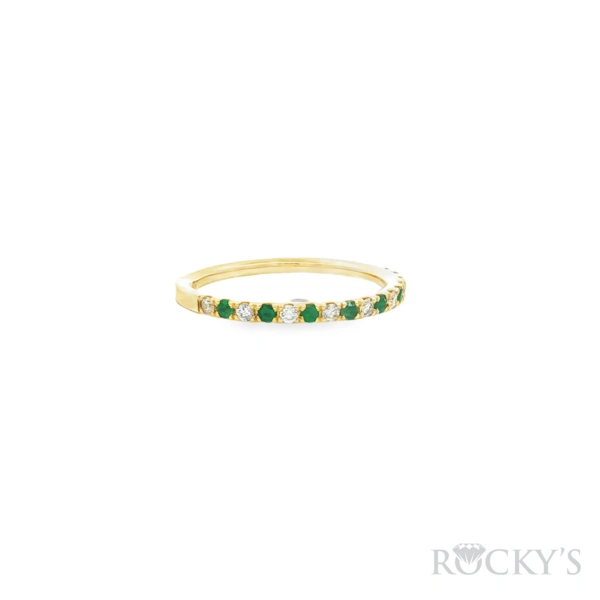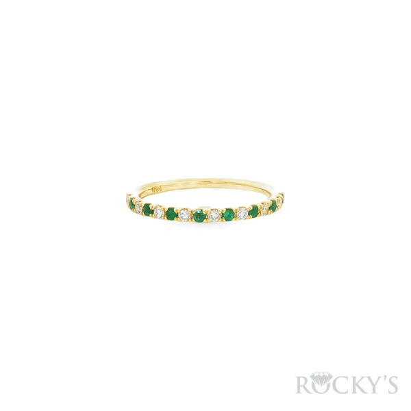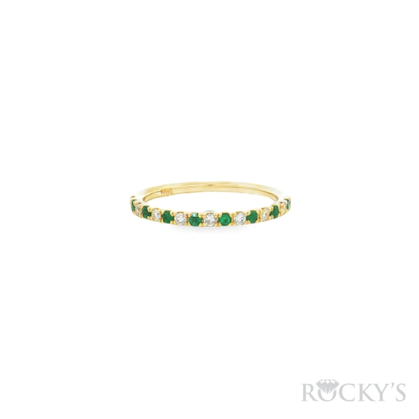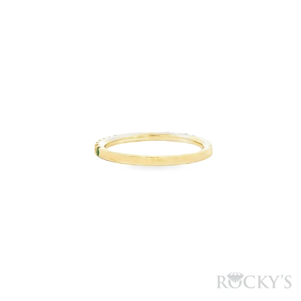 14 Karat Yellow Gold Stackable Emerald Ring, Size 6.5, with 8stn: 0.12TWT Round Cut Green Emeralds and 8stn: 0.11TWT Round Cut G/H Color SI Clarity Diamonds