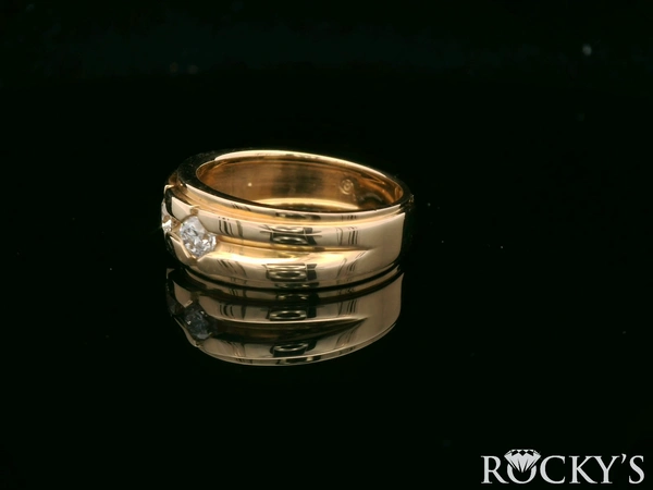 Yellow 14k Mens Ring with 0.84Tw Round Shape Diamond