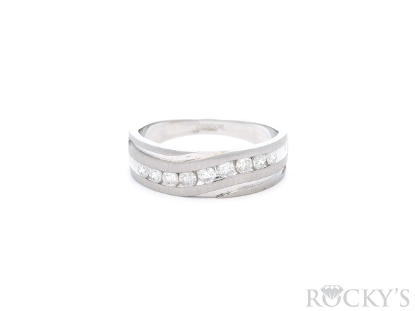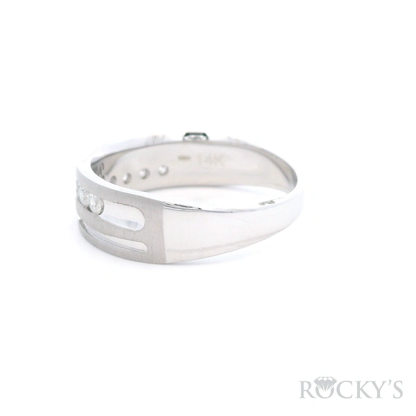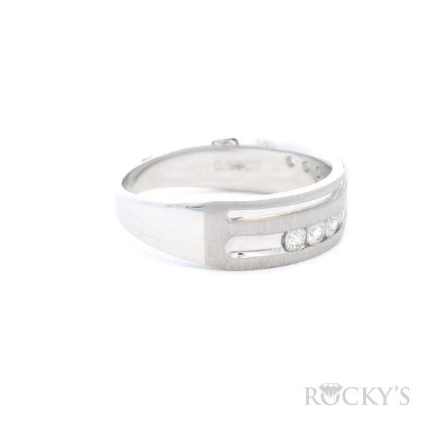 White 14K Men's Diamond Wedding Band Size 10 With 9stones of 0.50Tw Round Gh Si Diamonds - mens ring: diamond mens ring